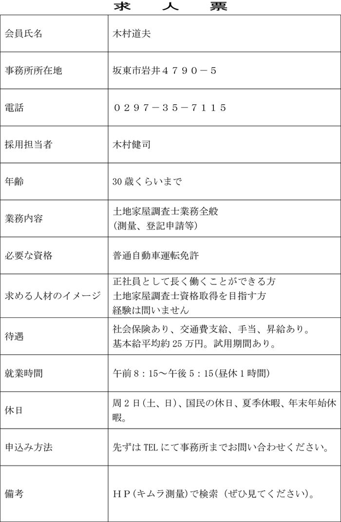 坂東市・木村事務所 求人情報